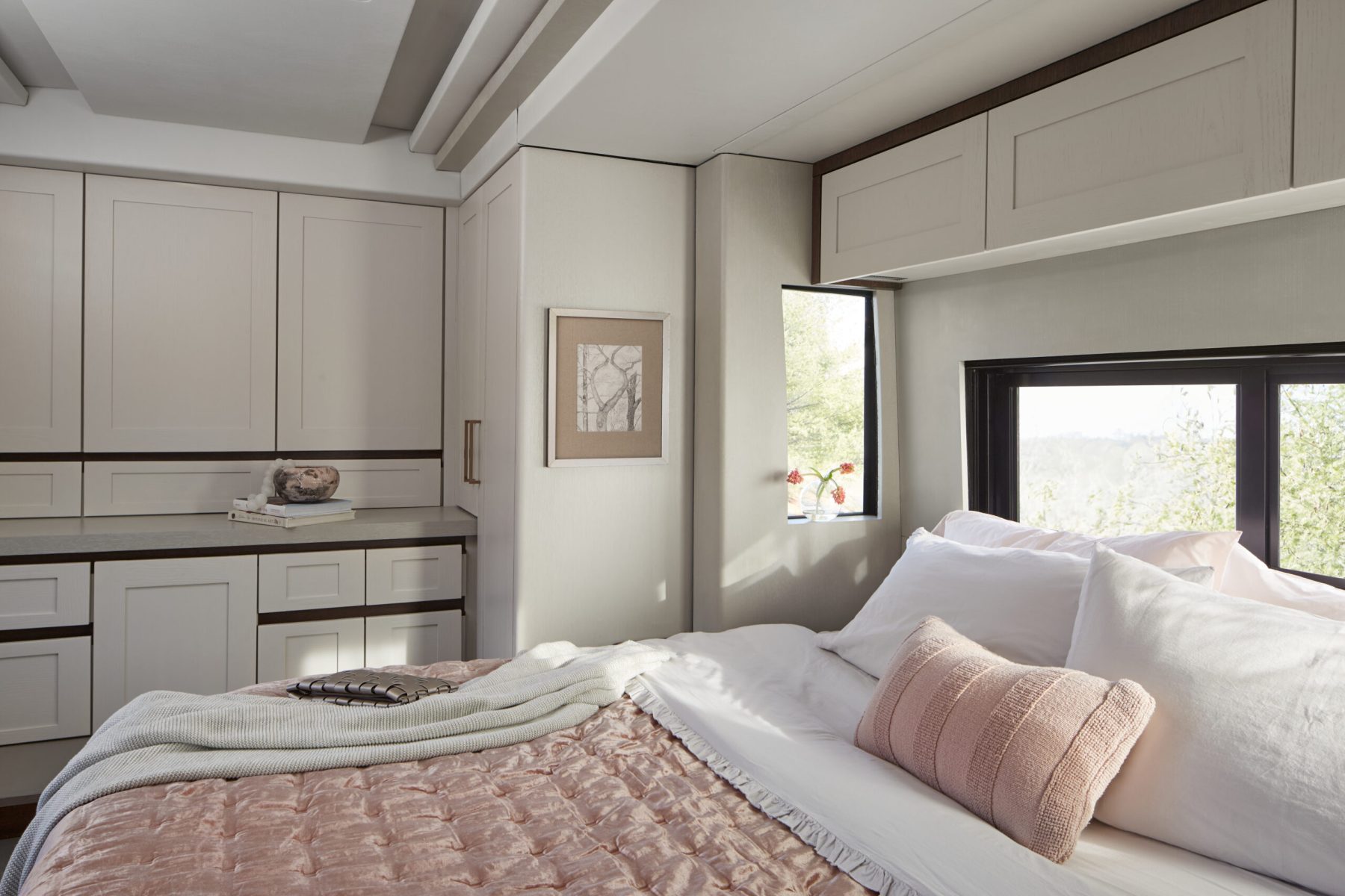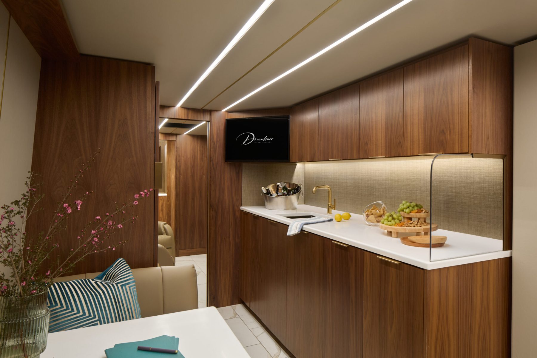 Embora a equipe da Dreamliner tenha sido discreta quanto aos detalhes do interior do ônibus de Benson, só podemos imaginar algo que combine com sua personalidade criativa — talvez uma cama elástica no lounge ou uma estação de artes para os momentos off-stage.