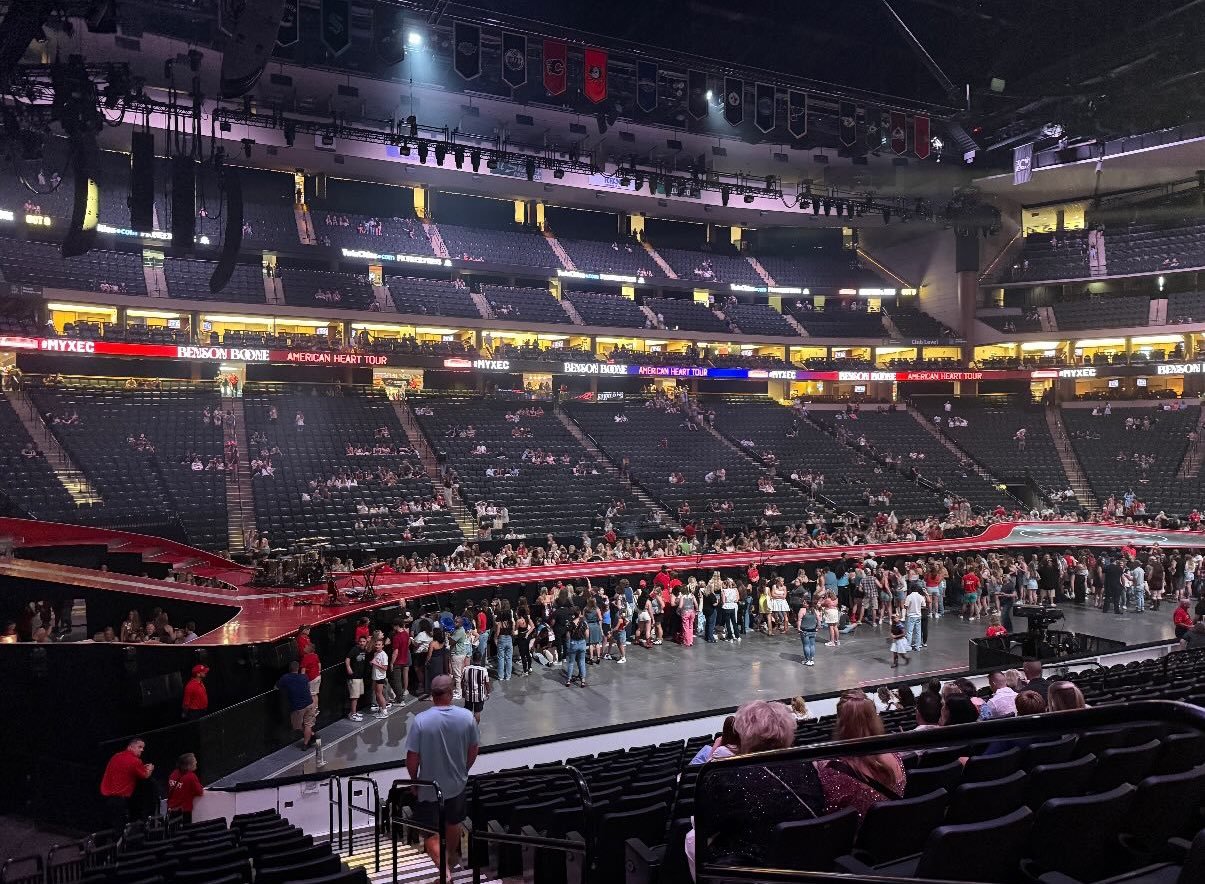 Nesta última, Boone fez um de seus saltos mortais já característicos, se lançando de uma plataforma sob gritos e suspiros audíveis da plateia — que incluía desde crianças do ensino fundamental até seus pais igualmente empolgados. Com tantas famílias presentes numa noite de verão no Meio-Oeste, foi aquele raro show em arena onde as vendas de sorvete talvez tenham rivalizado com as de cerveja nas lanchonetes — contribuindo com a estética “tudo americano” do novo álbum de Boone e da turnê mundial American Heart World Tour.